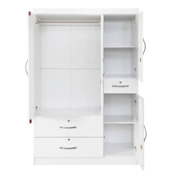 Porkliver White Wood 47 in. Wardrobe Armoires with Mirror, Hanging Rod, Drawers, Shelves 73 in. H x 47 in. W x 20 in. D