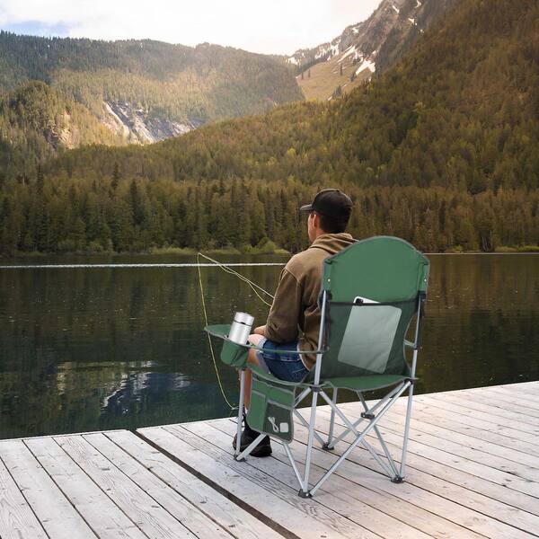 Portable Camping Chair, Lawn Chair, Beach Chair with Armrests, Cooler, Cup Holder and Side Pocket Heavy Duty (1 Pack)