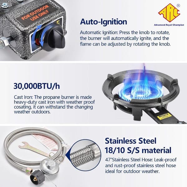 Portable Propane Burner, 13 in. Single Propane Burner, Grill in Black Cast Iron Propane Burner, Great For Outdoor Wok