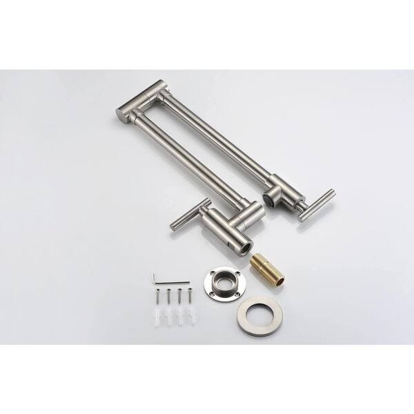 Pot Filler Faucet Wall Mount Kitchen Folding Faucet with Double Joint Swing Arms in Brushed Nickel