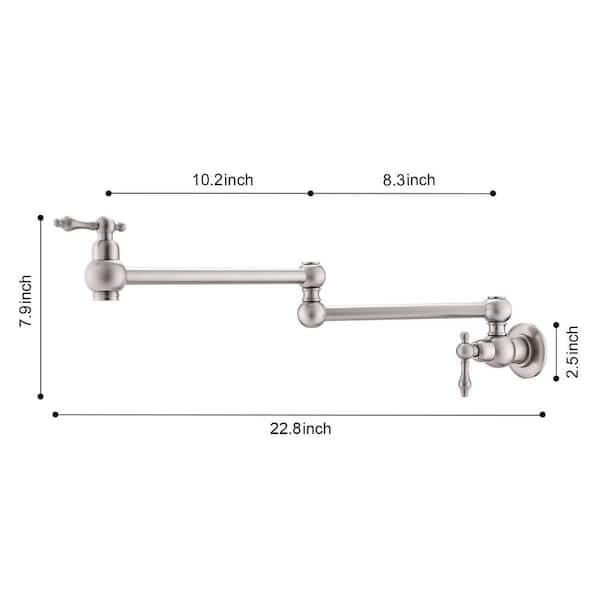 Pot Filler Faucet-Wall Mount Kitchen Sink Faucet Folding Stretchable with Single Hole Two Handles in Brushed Nickel