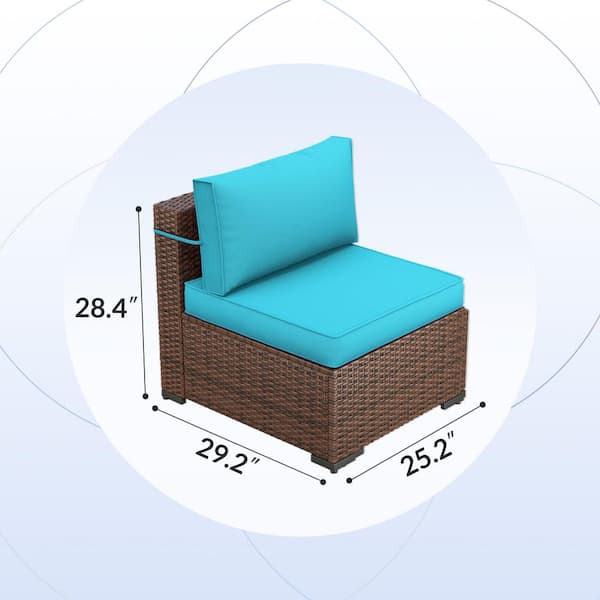10-Piece Wicker Patio Sectional Conversation Sets With 2 Coffee Table and Sky Blue Cushions