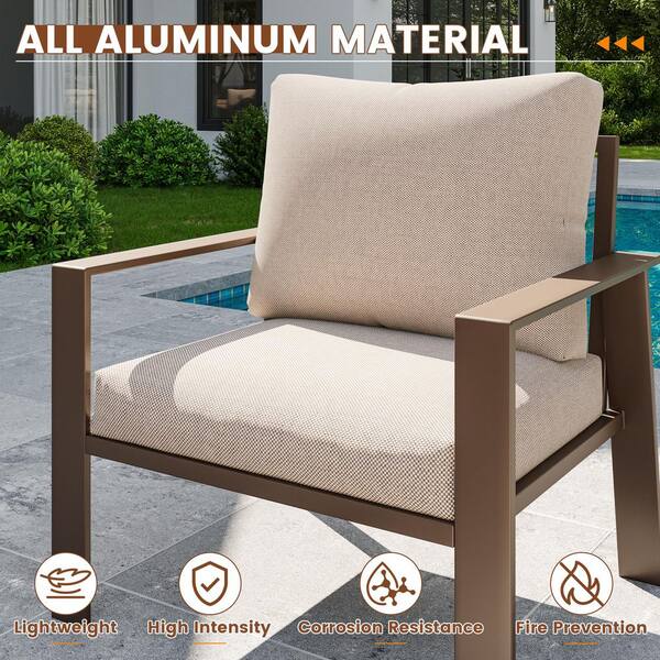 2-Piece Brown AluminumOutdoor Single-Arm Chairs With Khaki Cushion