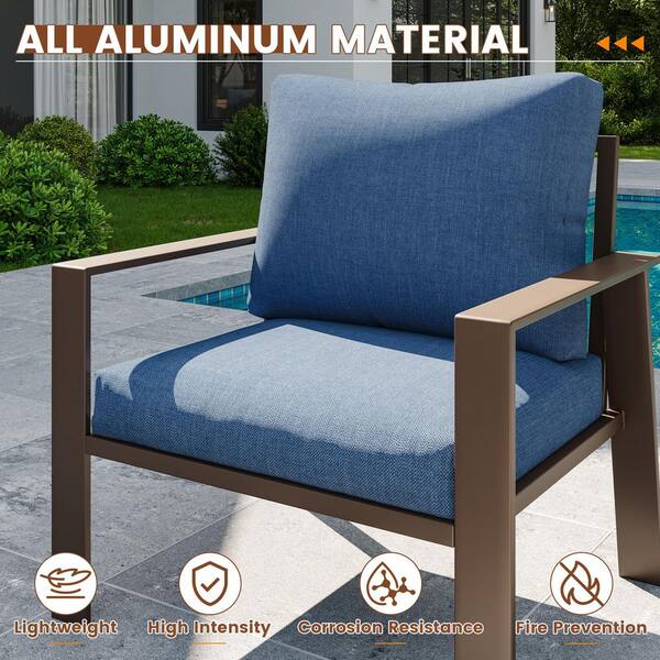 2-Piece Brown AluminumOutdoor Single-Arm Chairs With Navy Cushion