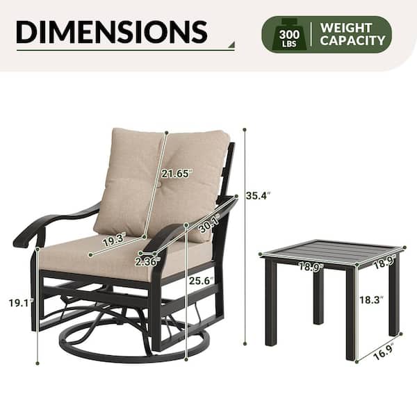 3-Piece Aluminum Swivel Outdoor Rocking Chair with Cushion Sand,Patio Conversation Set with Coffee Table,Garden,Backyard