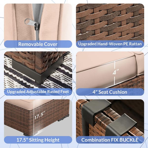 3-Piece Wicker Patio Conversation Set with 4 in. D Cooling Khaki Cushions