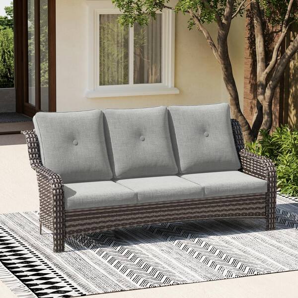 3-Seat 72 in. Wicker Outdoor Patio Sofa Sectional Couch with Gray Cushions