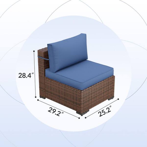 8 Piece Brown Wicker Outdoor Sectional Set with Fire Pit Table, Coffee Tables and Navy Cushions