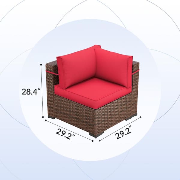 9-Piece Wicker Patio Sectional Conversation Sets With Coffee Table and Bright Red Cushions