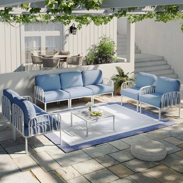 Blue Resin Plastic Material 7-Person DIY Patio Conversation Set with Cushion