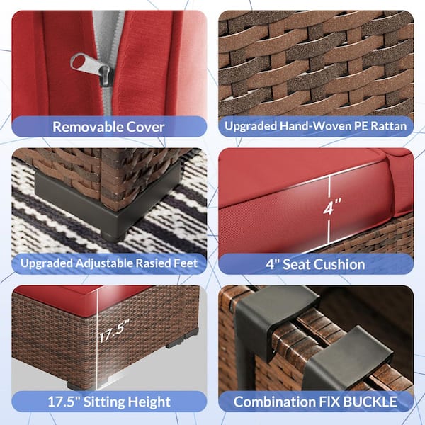 Brown Wicker Outdoor Loveseat with Cooling Cushions