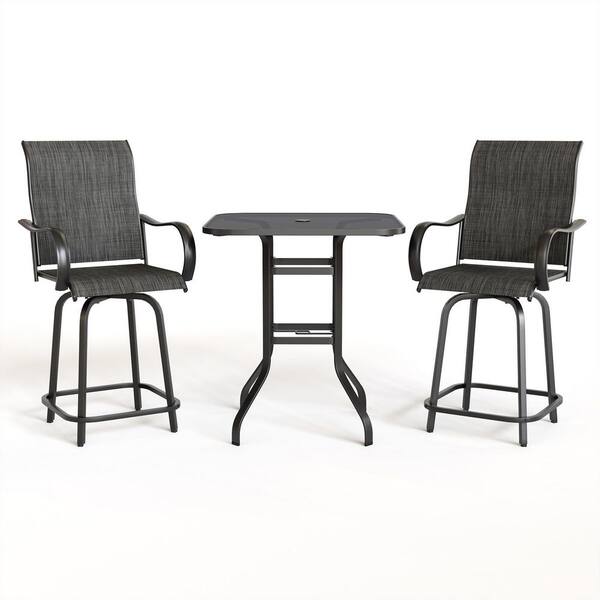 Gray 3-Piece Steel Outdoor Patio Bar Set with High Swivel Bistro Chairs