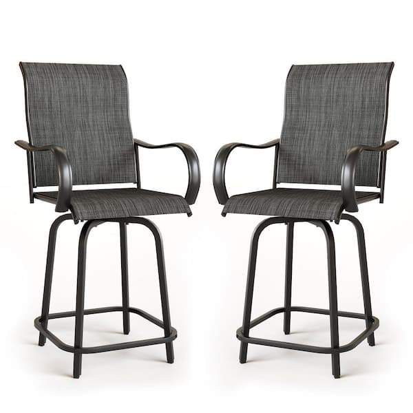 Gray Swivel Metal Outdoor High Bar Stools (2-Pack)