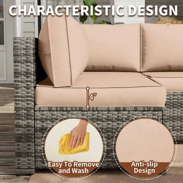 Outdoor 25.7 in. x 4 in. Sectional Cushions Set Seat/Back Khaki Cushion