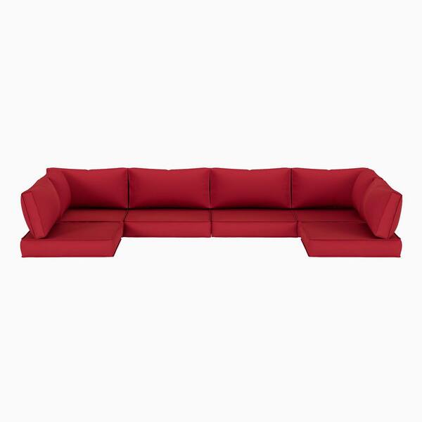 Outdoor 4 in. Sectional Cushion Set Seat/Back Dark Red Cushion (Set of 6-Cushion, 6-Backrests, 2-Coner Cushions)