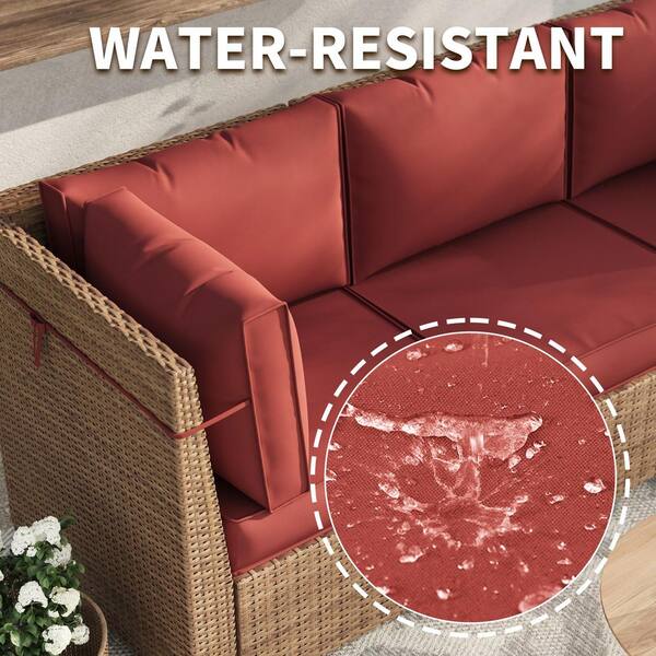 Outdoor Red 4 in. Thick Replacement Cushion Set Seat/Back Cushion (Set of 3 Seats, 3-Backs, 2-Short Backs, 1-Footrest)