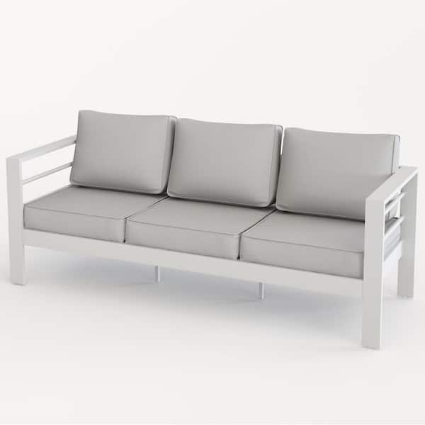 Oversized White Aluminum Outdoor Patio 3-Seat Couch with 5 in. Light Gray Cushions