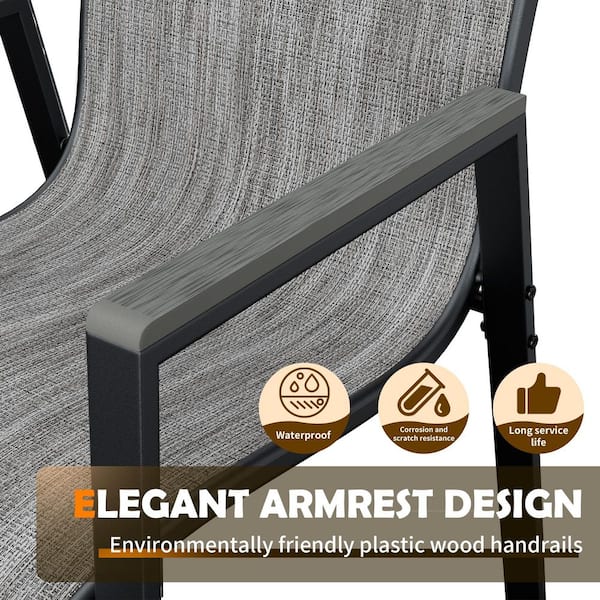 Weingarten 23 in. W Patio Dining Chair with Plastic Wood Handrails PVC-Coated Polyester High Back (Gray White Set of 2)