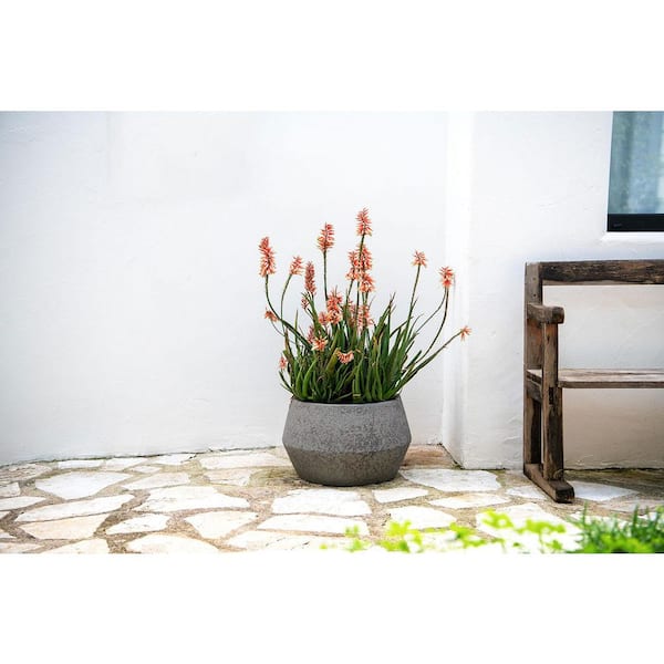 8 in. H Harley Low S Ficonstone Modern Rustic Planter Indoor/Outdoor, Diorite Grey