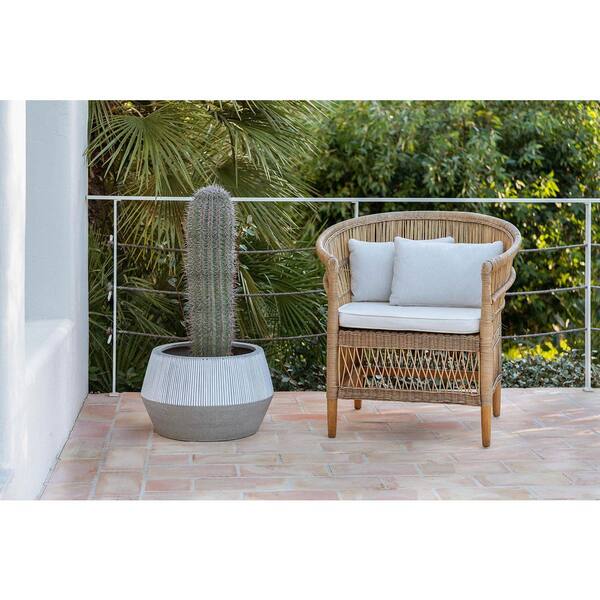14.17 in. W Harley Low S, Modern Geometrically Shaped Ficonstone Planter with Vertically Upper Stripe Design, White