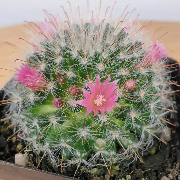Powder Puff Cactus-4 Live Starter Plants in 2 in. Growers Pots-Mammillaria Bocasana-Flowering Easy Care Cactus