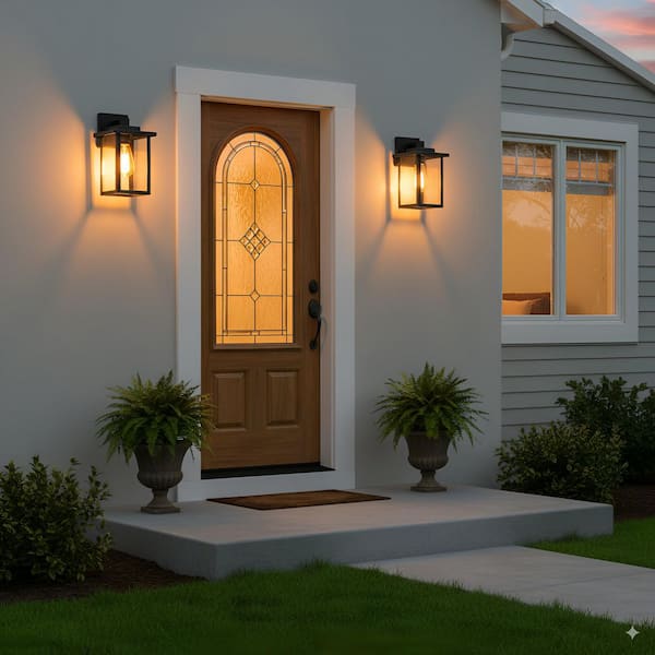 Powder-coated Black Outdoor Hardwired Wall Lantern Sconces with No Bulbs Included (2-pack)