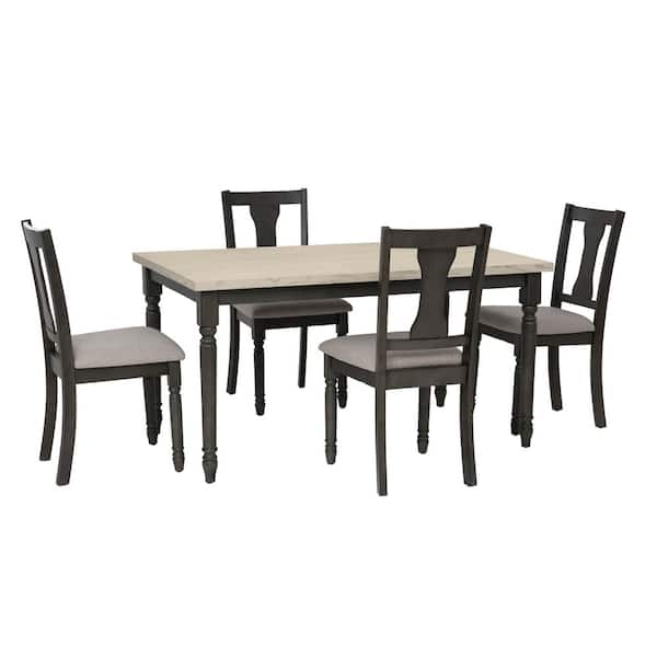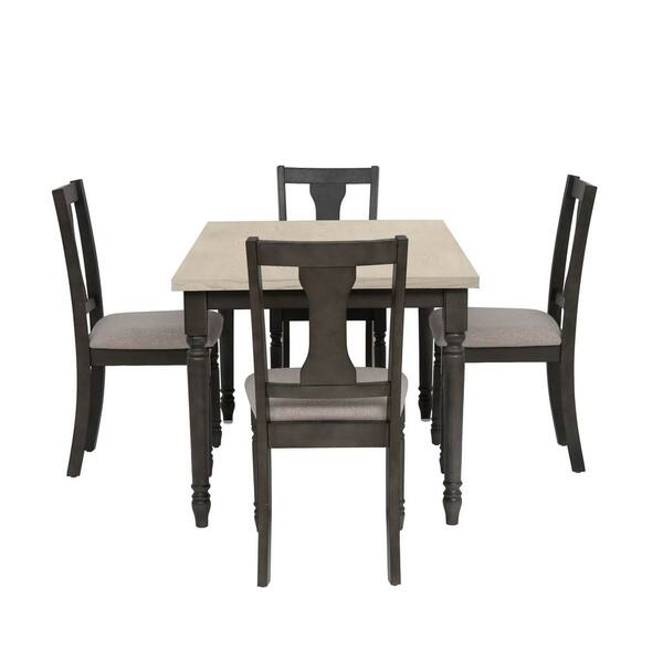 Angie 5-Piece Rectangle Dark Gray and Smokey White Wood Top Dining Room Set Seats 4