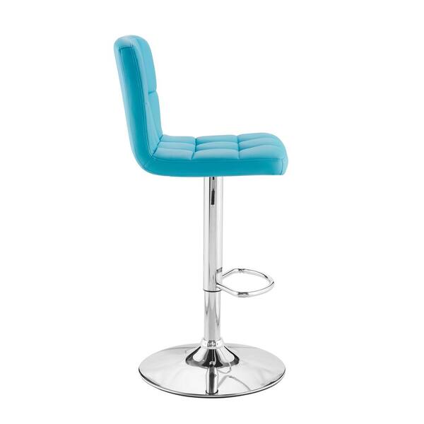 Chad 35.6 in. H - 44 in. H Teal Faux Leather Chrome Adjustable Barstool with Faux Leather Seat