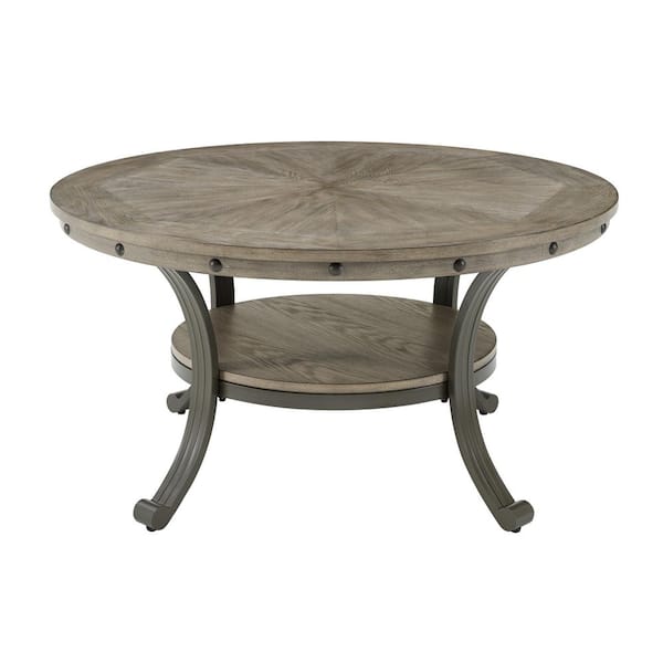 Franklin 36 in. Pewter Gray Round Wood Coffee Table with Shelf