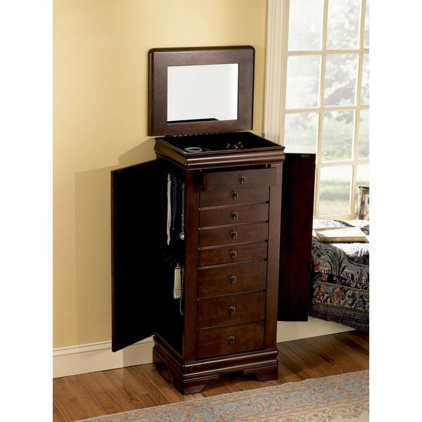 Louis Philippe Jewelry Armoire with Mirror - Marquis Cherry
