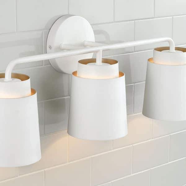 Pratt 24.50 in. W x 9.50 in. H 3-Light Vanity Light in Matte White with Soft Gold Interior