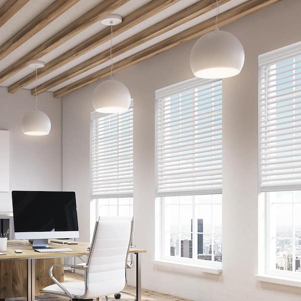 Pre-Cut 36 in. W x 60 in. L White Cordless Room Darkening Faux Wood Blinds with 2 in. Slats