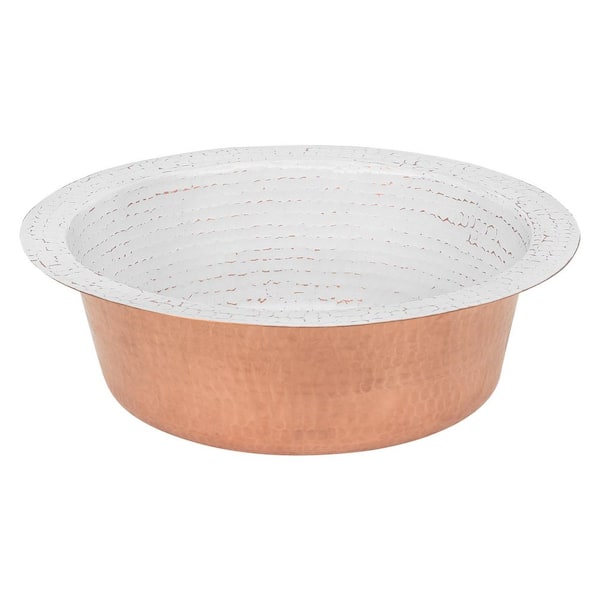 16 Gauge Hammered Copper 14 in. Round Drop-In/Undermount Bar Sink with 2 in. Drain Opening in Glazed White