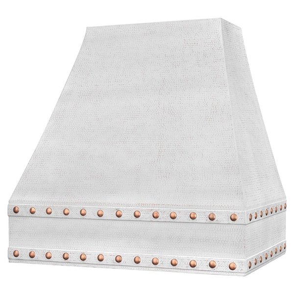 36 in. 1250 CFM Hammered Copper Ducted Wall Mounted Correa Range Hood in Glazed White with Slim Baffle Filters