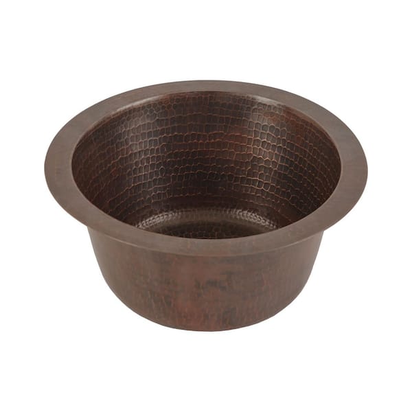 Dual Mount Round Hammered Copper 10 in. 0-Hole Bar Sink in Oil Rubbed Bronze