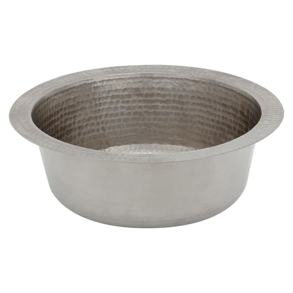 Nickel 16 Gauge Copper 12 in. Dual Mount Round Bar Sink with 2 in. Drain Opening