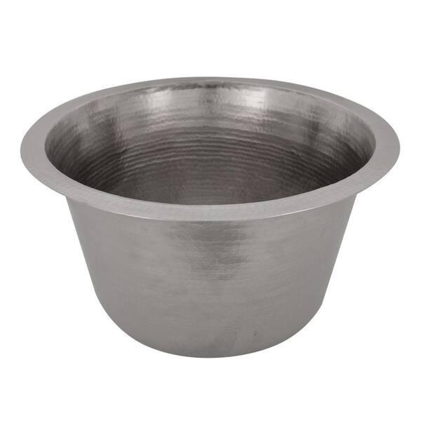 Under Counter/Surface-Undermount Round Hammered Copper 17 in. 0-Hole Bar/Prep Single Bowl Kitchen Sink in Nickel