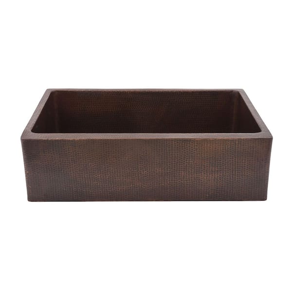 Undermount Hammered Copper 33 in. 0-Hole Single Bowl Kitchen Apron Sink in Oil Rubbed Bronze