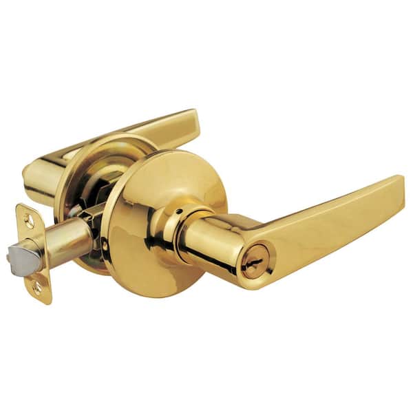 Brass Plated Light Commercial Duty Entry Door Handle Lock Set with 4 Keys Total, (2-Pack, Keyed Alike)