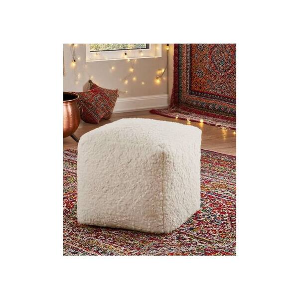 Premium Beige 16 in. x 16 in. Modern Square Pouf Off-White Faux Fur Fabric Upholstered Ottoman by Framed Wall Art