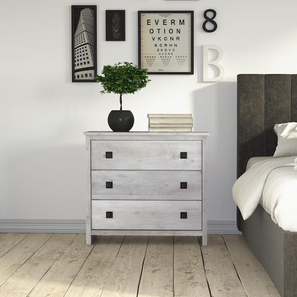 Bancroft Washed White 3-Drawer 16 in. D x 29.75 in. W x 26.75 in. H Nightstand