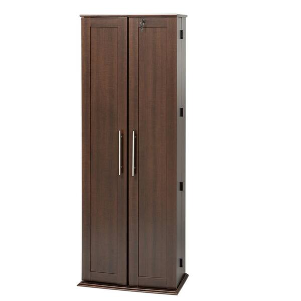 Espresso Locking Cabinet with Panel Doors, Cabinet with CD Storage, DVD Storage Cabinet with 17-Adjustable DVD Shelves