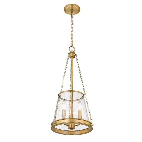 Prescott 12 in. 3-Light Empire Pendant Rubbed Brass with Clear Glass Shade