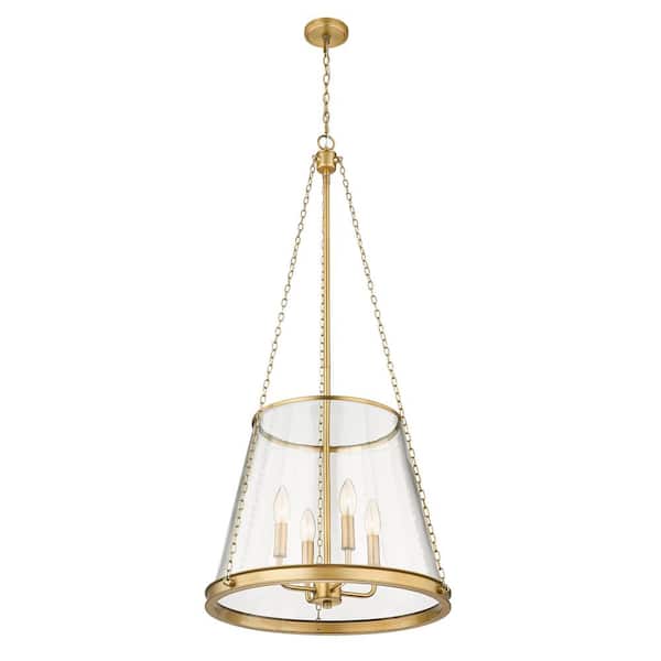 Prescott 18 in. 4-Light Empire Pendant Rubbed Brass with Clear Glass Shade