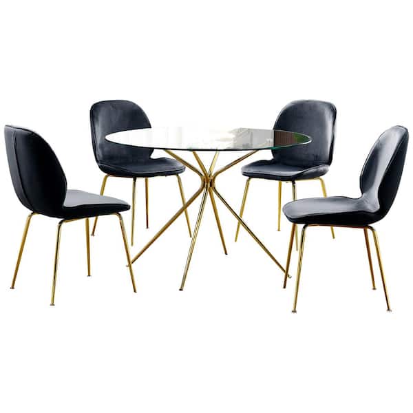 Preston 5-Piece Black Round Glass Top Dinette Set (Seats 4)