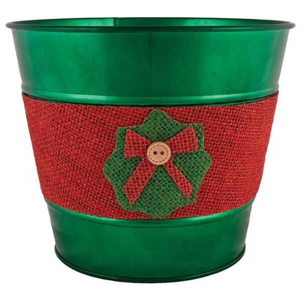 Jute Wreath 7 in. Dia. Emerald Tin Pot
