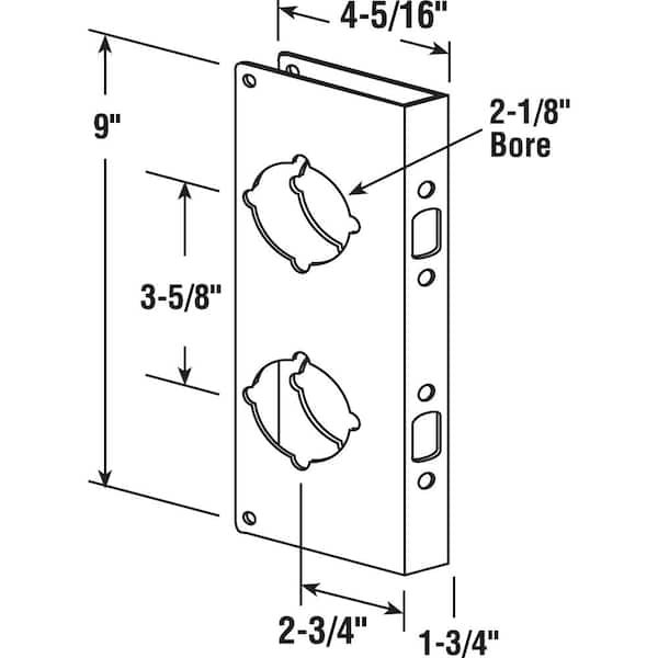 1-3/4 in. x 9 in. Thick Solid Brass Lock and Door Reinforcer, 2-1/8 in. Double Bore, 2-3/4 in. Backset