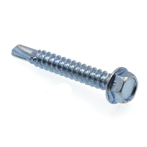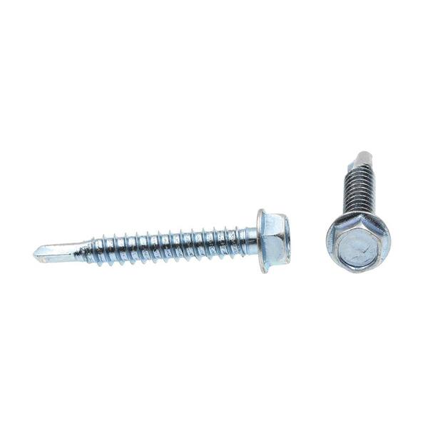 #12 x 1-1/2 in. Zinc Plated Case Hardened Steel Indented Hex Washer Head Self-Drilling Sheet Metal Screws (100-Pack)