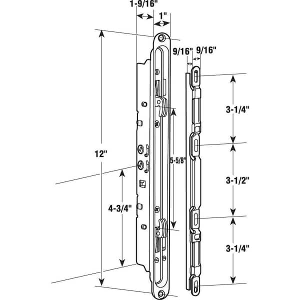 Multi-Point Mortise Latch and Keeper, 12 in. Mounting Holes
