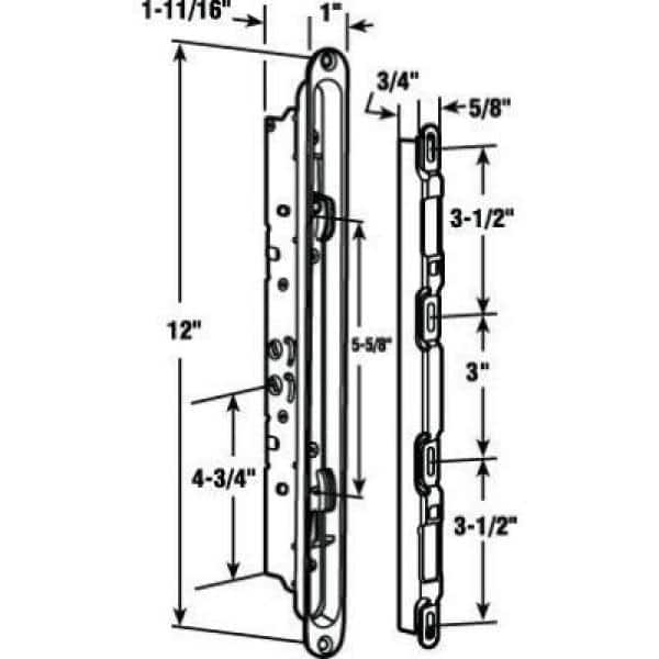 Multi-Point Mortise Latch and Keeper, 12 in. Mounting Holes